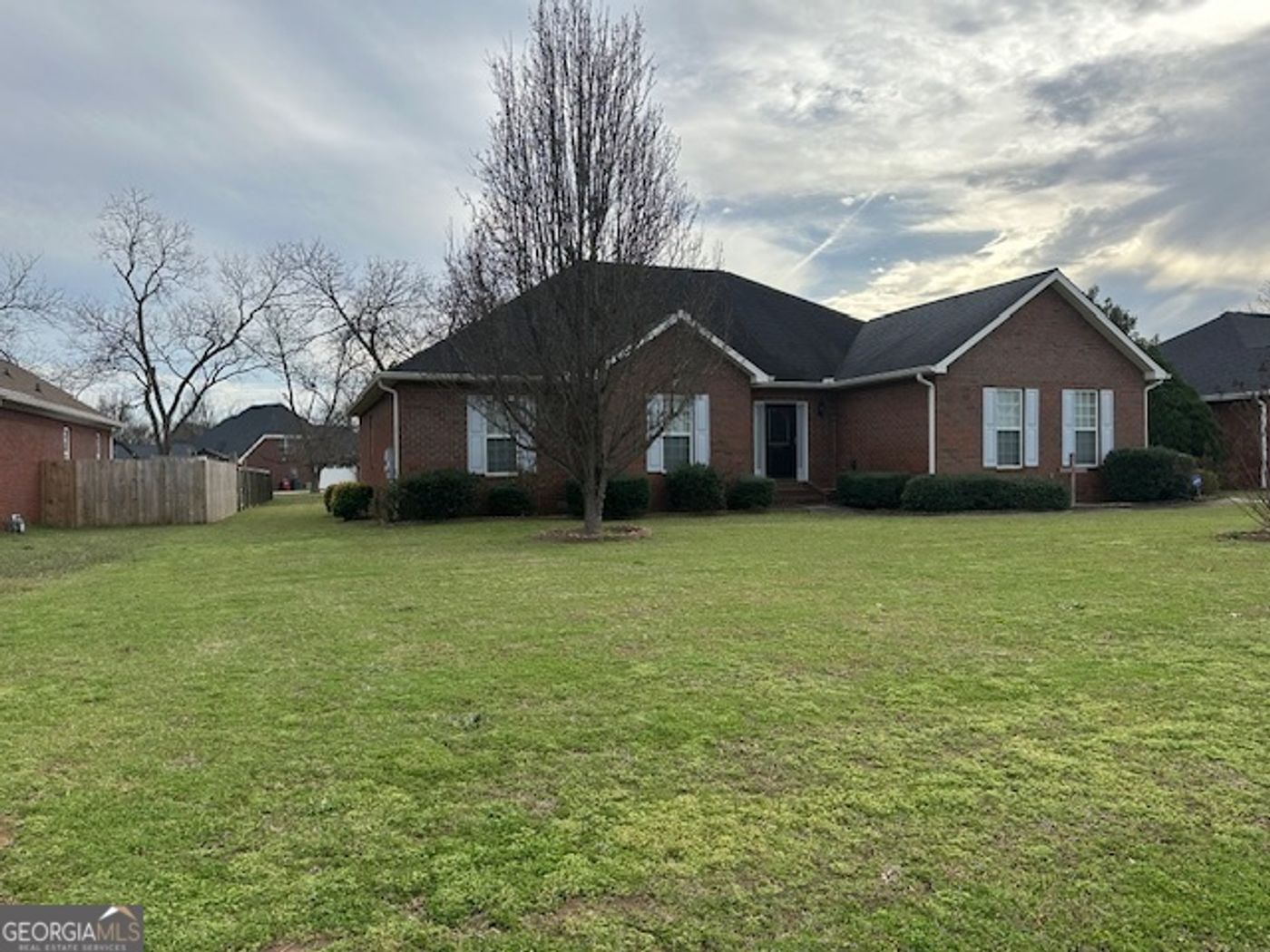 This one is it! Large open concept floor-plan, featuring granite counter-tops, gas log fire-place, engineered hard-wood flooring in the living areas, carpet in the bedrooms. Master bedroom offers two large walk in closets, jetted tub, separate shower with glass shower door. Large fenced in back yard on a corner lot. Brick front with vinyl sides for low maintenance. Located in the USDA area.