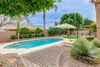 Formal living and dining; new flooring and paint throughout home. Chef's kitchen w/granite countertops, glass-tiled backsplash, deep sinks & island. Downstairs 34x17 family room plus 2 bedrooms, bath with new walk-in shower & laundry. Upstairs has huge master with new shower and bathroom. 2 other bedrooms upstairs - one with large walk-in closet. Plantation shutters or upgraded window coverings throughout. Private backyard is great for entertaining with Grecian style pool and lush, mature trees.