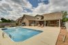 Resort like home features three bedrooms on the main level with office or 4th bedroom up. NEW ROOF,Vaulted Ceiling,Hardwoods,Tile,Fireplace and breathtaking pool and lanai. Fully fenced back yard with side entry garage.