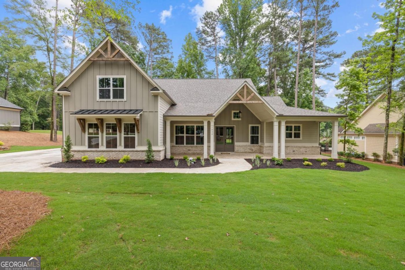 The Caroline Plan by Waterford Homes. Primary, secondary and office on main. Huge spacious open floor plan with vaulted great room, 12' sliders. Covered screened in porch and expansive rocking chair porch. 3 Car Garage. Gourmet kitchen with loads of cabinetry. 10' ceilings, 8' doors on main. Nice Plan!