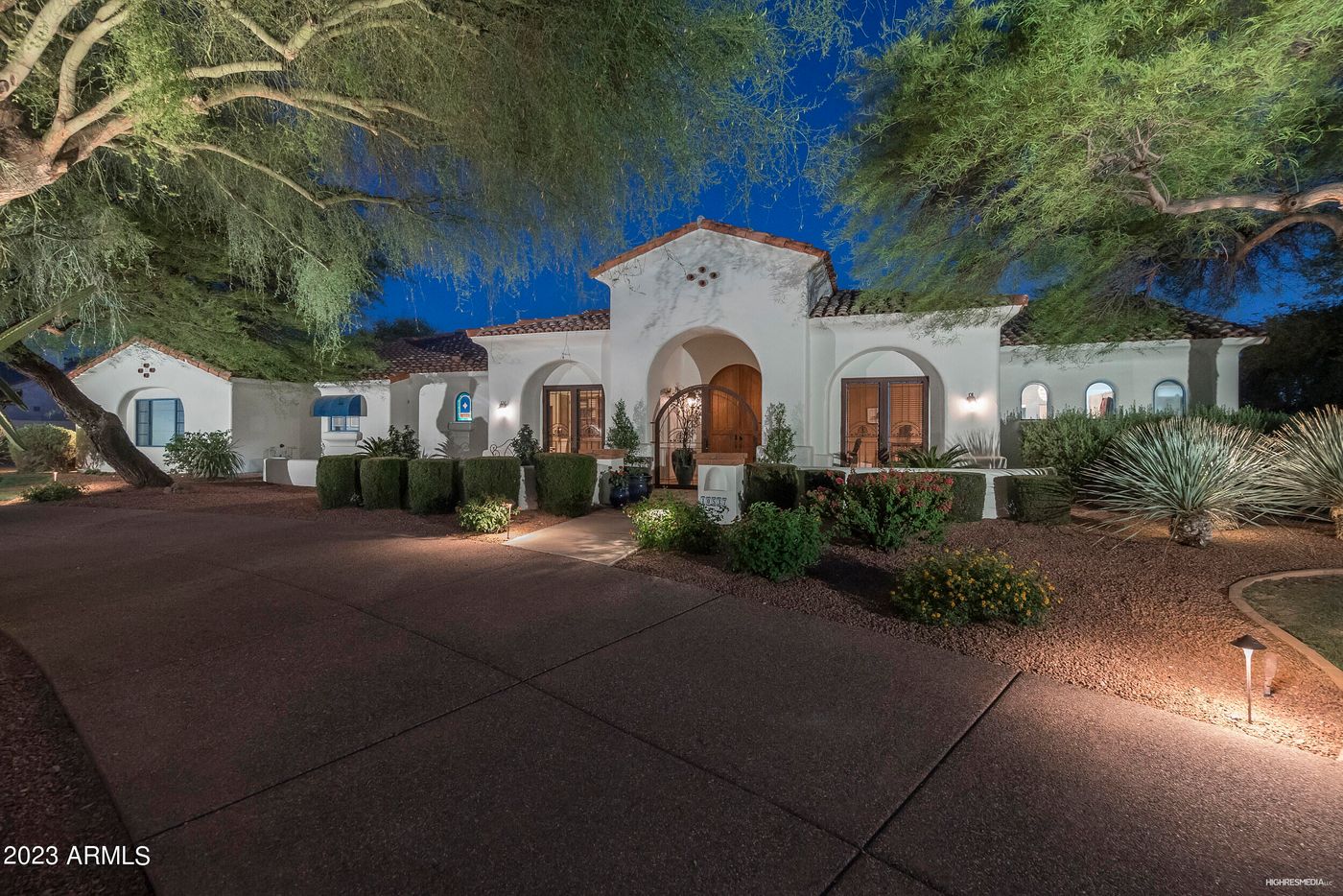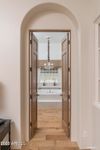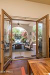 The many french doors open the indoor to outdoor living. The patio is unique for its size; its roaring arches an architectural masterpiece. . A misting system adds to the patio allure.