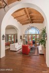 Upon entering this authentic Santa Barbara style home you will be mesmerized by its vaulted tongue and groove ceilings, the exposed wood beams and arched entry ways. They all add to the airy grandeur.