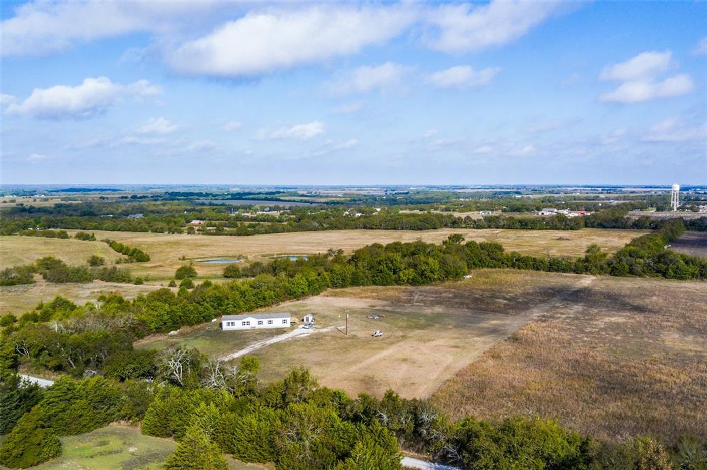 This well cared for 2017 Clayton home sits on 8 beautiful acres on a back county road. When you walk in the front door you are greeted by complete open concept living with an oversized kitchen island as your focal point. The 3 large windows over the kitchen sink brings in an amazing amount of natural light. This split bedroom plan has 4 bedrooms, 2 baths, and a built in desk between 2 of the secondary bedrooms. The mudroom has built in cabinets and the perfect bench area to hang your hat and kick off your boots. This home is located near Skydive Dallas, sit out on your deck with your favorite drink and watch the skydivers as they come down from the plane. With 8 acres of land, the possibilities are endless!