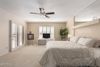 CalculateRare waterfront Cimarron model in the gated active-adult community of Palo Verde in Sun Lakes! South-facing lot with peaceful water and mountain views, plus stunning Arizona sunsets. Welcoming front courtyard leads into an open foyer that flows into the living/dining room with fireplace, shutters, neutral tile and carpet. Bright, open kitchen with plenty of storage and built-in bar area is perfect for casual dining and entertaining. Spacious primary suite features two walk-in closets, dual sinks, soaking tub, walk-in shower and private patio exit. Large guest bedroom offers flexible space for office or hobbies. Oversized garage with golf-cart space and additional storage. Come enjoy resort-style amenities including golf, pools, fitness, pickleball, dining, and social activities!