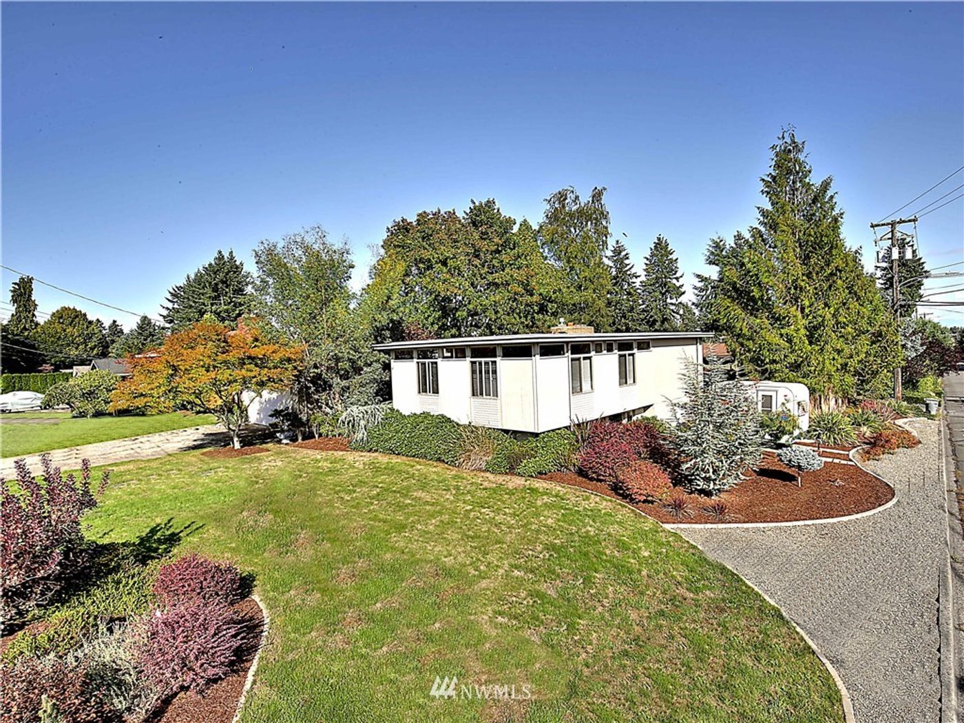 Classic 1963 mid-century modern in Fircrest! Enjoy hallmark features including low-pitched roofs, overhanging eaves, open floor plans, natural materials like wood, brick & stone, exposed beams & tongue-n-groove ceilings, window transoms throughout and large expanses of glass windows blurring the boundaries of indoor and outdoors. Huge basement with concrete floors, wet bar, fireplace and storage. Great space for entertaining! Backyard oasis with new composite deck & fire pit pad. Must see!