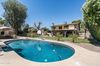 Tucked away in a private oversized cul-de-sac in one of the most desirable ZIP codes in the state, this 4 bed, 2.5 bath home with a 3-car garage, RV/trailer parking, and NO HOA is a rare find that checks every box—and then some. But the real magic? The backyard. Imagine a Pebble Tec diving pool sparkling under the sun, surrounded by brand-new, lush artificial turf for year-round greenery without the upkeep. Professionally designed landscaping includes mature privacy hedges and newly planted trees that create a serene, secluded retreat. From the moment you arrive, you'll be wowed by the brand-new front landscaping with artificial turf, paver walkway, and fresh stucco + paint on the mailbox. Inside, you'll be welcomed by fresh interior paint, rich dark cherry plank wood floors, refinished downstairs cabinetry, and a wood-paneled feature wall in the living room for that designer touch. The sunken living room leads into a beautifully updated eat-in kitchen with granite countertops, newer stainless steel appliances (including fridge, microwave, and dishwasher), new blinds, and views of your backyard oasis.