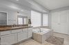 Upstairs offers four spacious bedrooms including an oversized primary suite with dual sinks, refinished cabinets, a soaking tub, separate shower, and a large walk-in closet. The hall bathroom has been fully remodeled with modern tile, dual vanities, and fresh finishes. Don't miss the custom touches throughouta framed-in staircase with a built-in office niche, new bedroom and laundry room doors, all electrical outlets and switches replaced, and more.