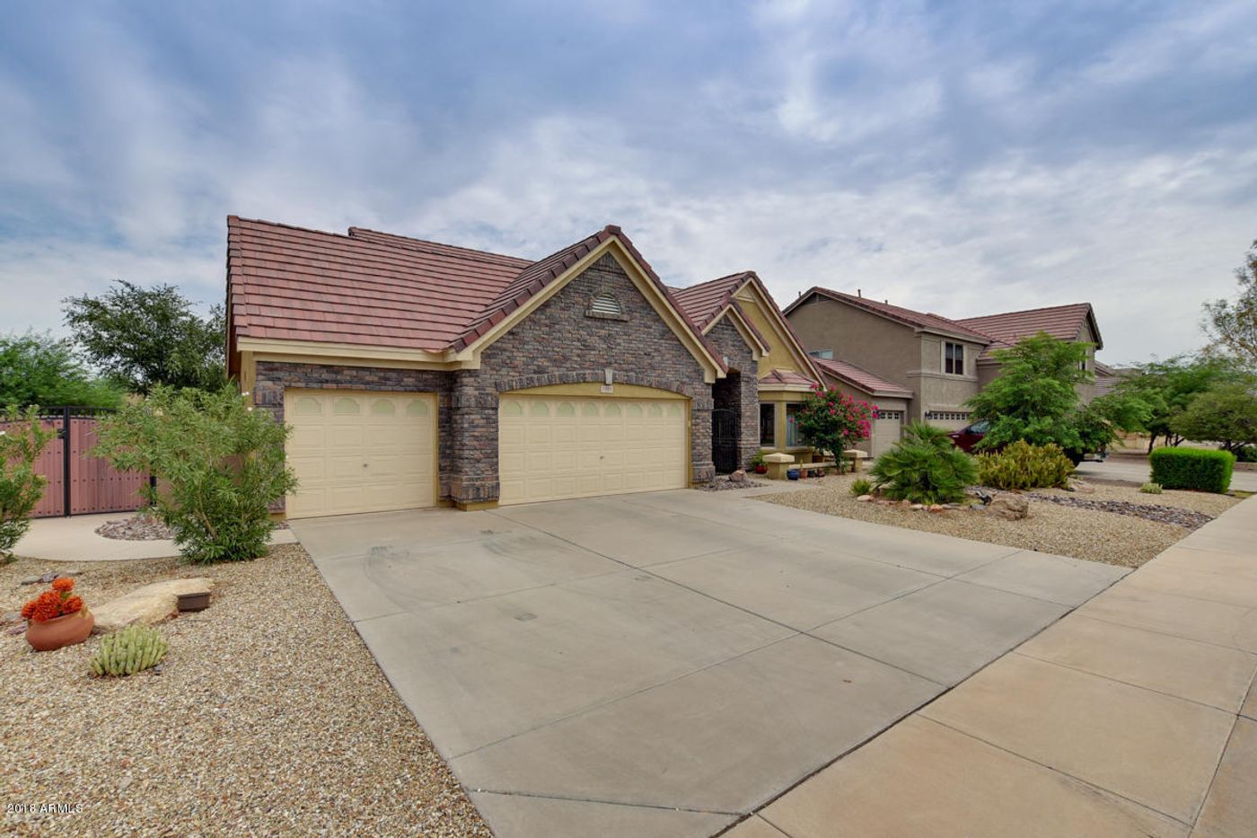 2,060 sq ft, 3 bedrooms all with spacious walk-in closets, 2baths, extra storage space in laundry room, kitchen appliances all convey plus an extra refrigerator in laundry room and black metal shelving, all window treatments, all plants, rocks and flower pots in yard, red stationary umbrella near pool, lawn mower and 1 metal shelving unit in garage!!
