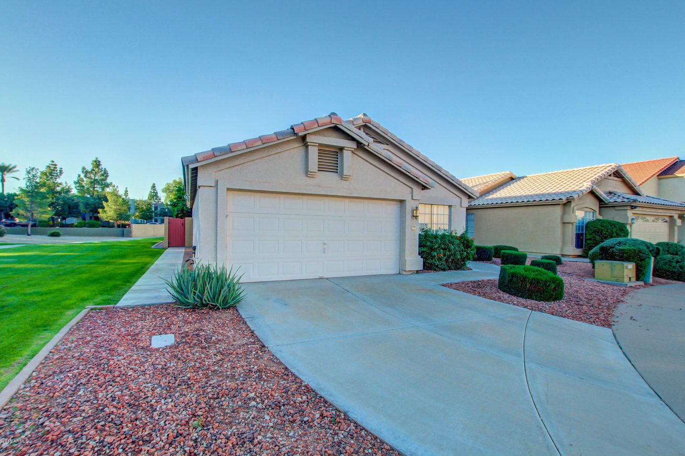 Honey stop the car! This is it! Lovely home in a great Gilbert location has just been placed on the market! Wonderful open floor plan with vaulted ceilings, neutral carpeting and picture windows! Eat in kitchen offers white appliances, custom cabinetry, pantry and plenty of counter space. Refrigerator, washer & dryer do convey with the property. Three spacious bedrooms! Master bedroom has a walk in closet and relaxing spa like bath with garden tub, separate shower and dual sink vanity! Enjoy the peace and tranquility in the serene backyard with a covered patio, mature fruit trees and colorful desert flora. One side and back of home backs to greenbelt area with walking path.