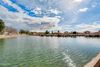 flower beds, a raised vegetable garden and turf in just the right places. The perfect yard for outdoor activities and the best seat in the house for watching the Arizona sunsets! The open concept, split floor-plan is surrounded with the primary bedroom, kitchen and 3 additional bedrooms located down the hall. The primary room includes a lake view window, full ensuite with garden tub, and walk-in closet. The kitchen includes newer stainless steel appliances and a butcher block island perfect for prepping delicious meals. This home also has a 2 year old AC ready to keep you cool and comfortable in those hot Arizona summers. Your new home is conveniently located just minutes to Gateway Pavilions, State Farm Stadium, Westgate Entertainment District, baseball fields