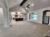 Step into the heart of the home—a stunning main living area highlighted by a soaring vaulted ceiling with a rich wood beam accent and a grand electric fireplace, creating the perfect ambiance for both cozy evenings and elegant entertaining.
