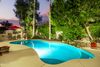 Gorgeous single-story in the gated and private Rancho Verde community, nestled in the heart of Scottsdale. This meticulously maintained, spotless home features two primary suites, vaulted ceilings, large windows, beautiful natural light, and a spacious open modern living space. High backyard walls provide privacy and create a tropical oasis with a refreshing blue pool, soothing water feature, built-in gas barbecue, misters, faux grass, luscious citrus trees, afternoon shade. The kitchen boasts extensive cabinets, granite counters, a built-in fridge and ice maker, a walk-in pantry, and an open layout connecting to the dining area and living room. Custom painted to create a cozy and luxurious feel. Finished 3 car garage with storage room! New A/Cs and water heater! BRAND NEW ROOF may 2024!