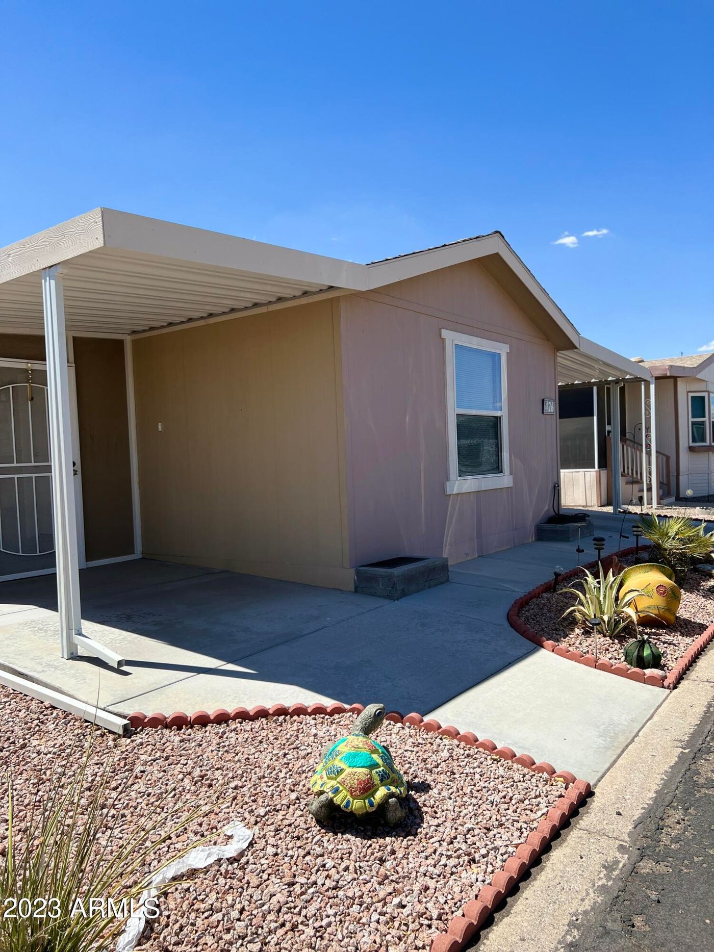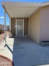 Paid for solar - NO Steps, Fully furnished, No Carpet, , 2 bedrooms, 2 bath Move in ready. Large living room, kitchen with lots of cabinets, and eating area. Tape and texture thru out, dual pane window, Microwave, stove and fridge new just over a year ago. New garbage disposal Main bedroom is large with en suite with walk in shower. Washer and dryer and other appliances convey with the home. Furniture conveys with home. Over sized shed finished inside , insulated with AC. Drive is wider than most, w parking for 2 cars. Large screened in patio with open patio area for grilling or sitting in the sun. Neat and clean home just waiting for you. Quite street Seller prefers cash sale or loan pre-approval