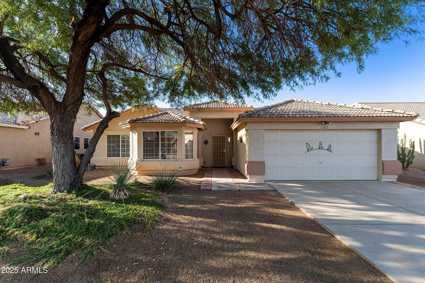 Move-in ready 3-bedroom, 2-bath home situated on a spacious 7,200+ sq. ft. lot with easy-care desert landscaping. This home features a desirable split floor plan, ceramic tile, and carpet in all the right places. The kitchen comes equipped with a refrigerator, and the washer and dryer are included, making it truly turnkey. No HOA means freedom and flexibility, and the generous lot provides plenty of room to enjoy outdoor living or create your own backyard retreat. Perfect for comfortable living with space to grow!