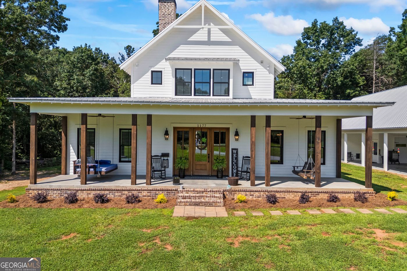 No detail left behind in this custom Banks County Custom Beauty! Nestled on 2.06 acres, this thoughtfully designed home is waiting for you to make it yours. From the moment you walk in, you'll feel the warmth of a space built for gathering-with a spacious main-level primary retreat, open living and dining areas, a gorgeous kitchen, butler's pantry, additional walk in pantry, coffee bar, and laundry room all perfectly laid out for everyday living and unforgettable entertaining. This home has antique oak flooring and quartz countertops throughout, along with ship lap custom walls, 2 50 gallon water heaters and sprayed insulation. Upstairs, two additional bedroom and bathroom suites give the kids their own space to host sleepovers, decorate their rooms, and create memories. Step out back to a porch big enough for all the BBQs, birthday parties, and summer nights under the stars-plus a yard full of possibilities. Need extra space for hobbies, work, or play? The 30x39 detached 3 bay carport and the 20x39 shop offer the perfect "man cave" or "she shed" with its own kitchenette and bathroom, along with plenty of room for tools, toys, and yard gear. Above the shop offers the opportunity to finish out a teen or mother-in-law suite, with your own design and finishes. All of this, just minutes from downtown Homer, local schools, I-85, and Hwy 365-where shopping, dining, and fun for the whole family are always close by.