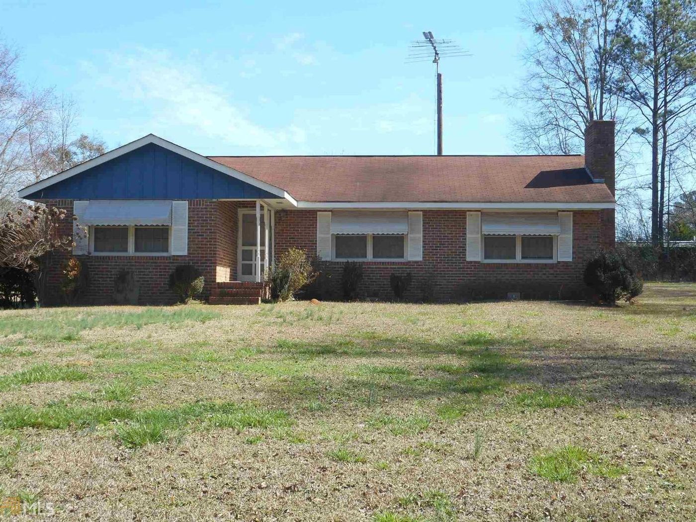 This 3BR/2BA brick home has living room, den with fireplace and wood burning stove. A large eat-in kitchen has 2 pantries and all appliances stay. The garage was enclosed for laundry room but allows for much storage or potential room for expansion . The home is enhanced with storm windows. There is a a detached carport, shed and permanent granite table in backyard. The lot is double road frontage with area for garden or possible site for another home. Home is being sold as/is.