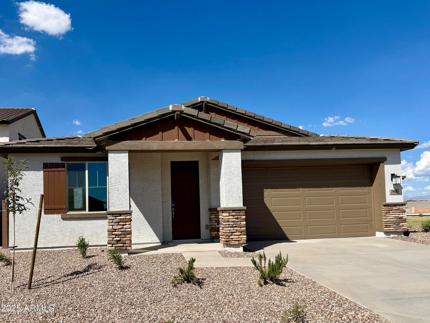 CalculateBRAND NEW | Estimated Completion December/January | Pool Sized Lot w/ a Double Gate | The Abbot. This charming 3-bedroom 2 bath home is exactly what you have been looking for! The floor plan features a separate dining off the kitchen for all your family get-together events. Interior finishes include granite kitchen & bathroom counter tops, espresso cabinets, and tile flooring throughout, except the bedrooms. Smart home technology is included along with a 14 seer HVAC and energy saving features. Also, this home includes stainless steel appliances, 220v pre-wire in the garage, 2'' window blinds, garage door opener, rain gutters, plus front yard desert landscape. Come see this home in the desert's most sought after hidden gem, Magma Ranch Vistas!
