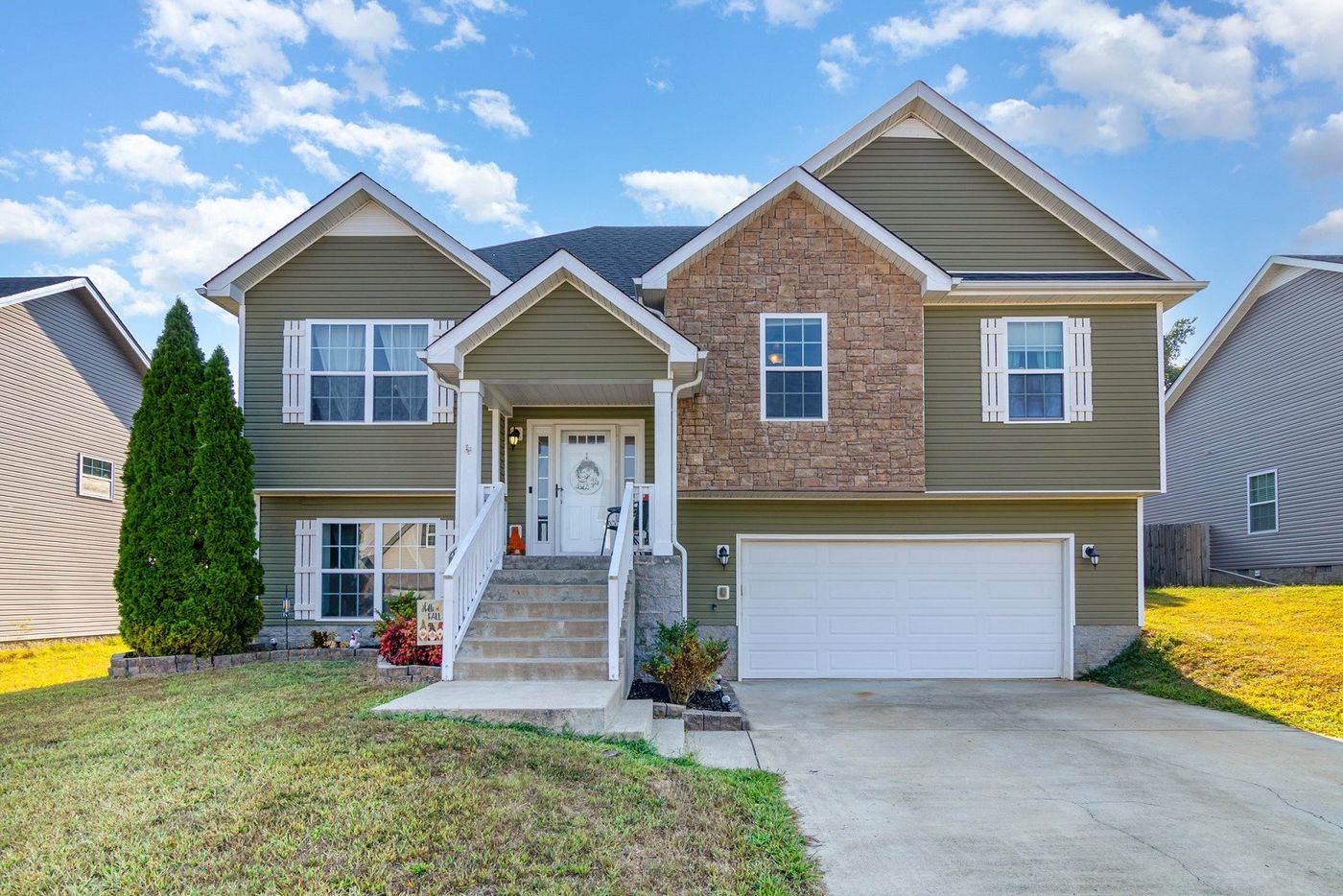 Beautiful split-foyer home with soaring ceilings and arched doorways! Step into the large living room and enjoy the stacked stone gas fireplace. Kitchen has tiled floors, pantry and breakfast area. Separate area with wainscoting that overlooks the foyer, can be used as a formal dining room, office or seating area. Primary bedroom has double tray ceiling and walk-in closet. Relax in the primary's garden tub or separate shower. Full bathroom on basement level is handicap accessible. Enjoy the view of the woods from the freshly painted deck with canopy. Screened-in patio creates a great place to entertain. Fenced in yard for privacy and pets. Leaf guard gutters still under warranty. Seller to provide clear termite letter.