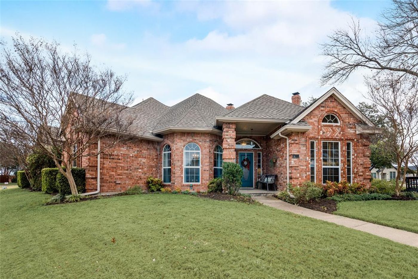 Beautiful corner lot home with circular drive immediately welcomes you upon arrival! This fantastic one story home features a split floor plan with 3 bedrooms, 2 gorgeously updated baths and a study. The primary bedroom and bath features a see through fireplace, a separate shower, two closets, double vanities and a heated floor. The kitchen features granite countertops, an island with cooktop and gorgeous light-colored cabinets. Enjoy cool evenings in the backyard or one of two separate outdoor living areas. Mature trees and beautiful landscaping adorn this wonderful home ready for you to call your own!