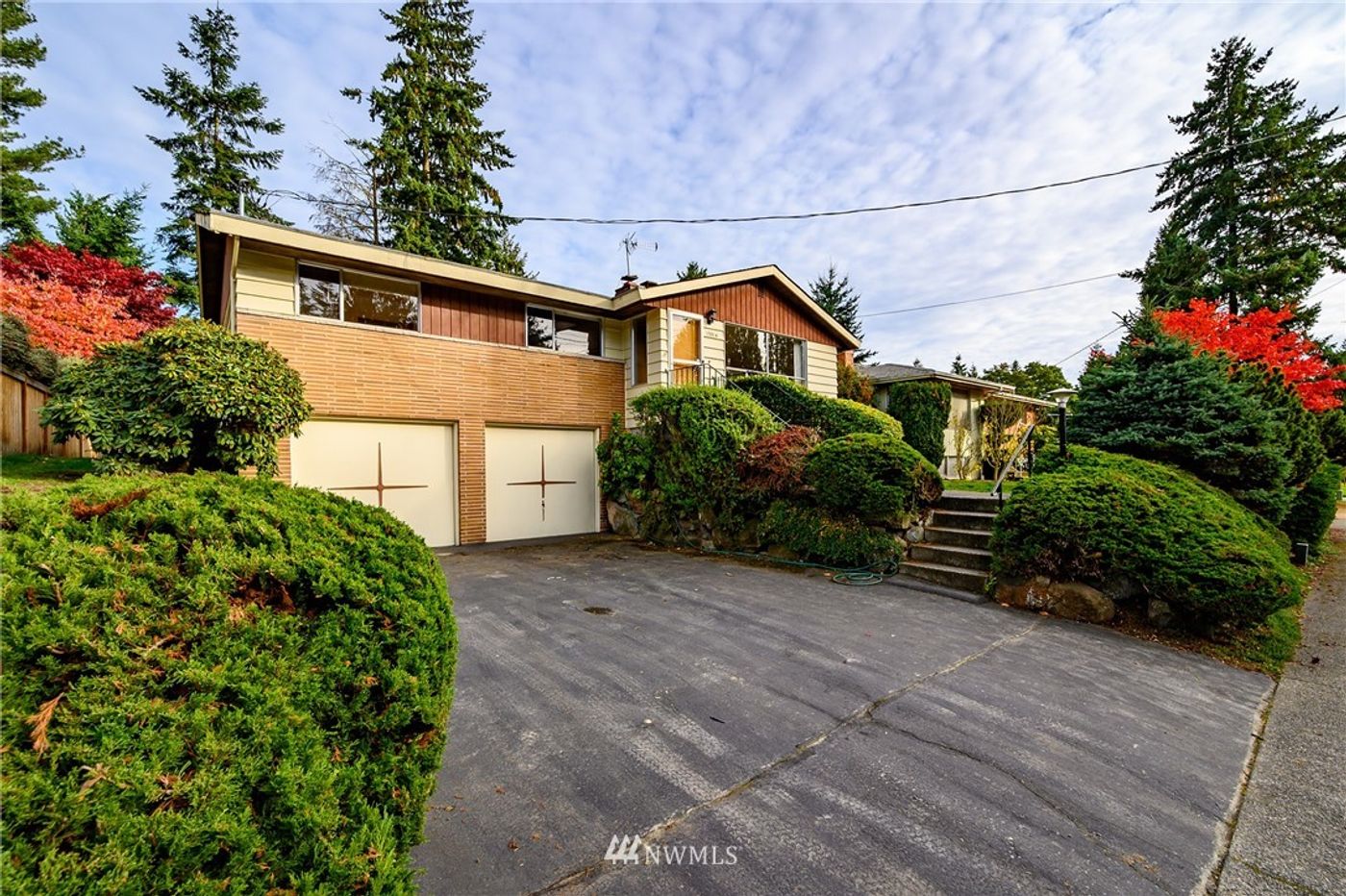 Wow - what a fabulous mid-century time capsule! 1st time on market since 1960. Three bedrooms, 1.5 baths & approximately 1,830 square feet. The open kitchen - with its retro stovetop and oven - & dining room floor plan is ideal. Back-to-back dining room/living room wood-burning fireplaces. A basement family room with third fireplace, separate den/office/utility space, 1/2 bath + 2 car garage are a bonus. Lovely fruit trees, mature garden & covered deck invite entertaining. Your ideal canvass.