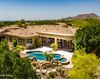 You will not want to miss this absolutely gorgeous, private, resort-like backyard, with amazing mountain views and an outside entertainment space that is unsurpassed! Three quarters of an acre with total privacy, backing up to the wash with North South exposure, this location, along the Shea Corridor, is not to be beat! Tucked into the luxury gated Sonora Vista subdivision, near Mayo Clinic, Basis Scottsdale, Desert Mountain High School, Ancala and Firerock Country Clubs, you have quick access to the best of East Scottsdale. When you enter this beautiful domed foyer with raised coffered ceilings and recessed lighting, you are immediately greeted by travertine flooring throughout and an amazing wall of painless glass! Look out to this lush, entertainers backyard offering views of Turtle Mountain to the south and east. This exceptionally well built Forte custom home with 12+ ft high ceilings, and lots of natural light, really exemplifies the best of Scottsdale living. A well designed split floor plan with an oversized master suite, gives you privacy from guests or other members of the home. Enjoy the separate office/den with custom built in desk, bookshelves, and entertainment center, right off the Owners Bedroom Suite, which in itself, is complete with a custom Cantera stone fireplace, bay windows, floor to ceiling Plantation shutters, access to the back patio, and large sunny Bathroom with dual vanities, tile countertops, and custom tile inlay backsplash. Step into the large walk-in tiled shower with glass block, relax in the separate soaker tub, and enjoy all the room you need in the large walk-in closet with windows to let in more natural light.