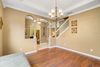 The well-equipped kitchen is a culinary enthusiast's dream, featuring stainless steel GE appliances, a tile backsplash, recessed lighting, wood cabinets, and a convenient Breakfast Bar. Throughout the downstairs area, you'll also find charming crown molding adding a touch of elegance.