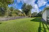 Situated on a corner lot, the entire property is fully fenced, ensuring privacy and security. A gate at the entry adds an extra layer of convenience. Additionally, the house is surrounded by a lovely wooded area, providing a serene ambiance.