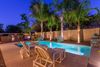 Looking for a STUNNING home w/6 bedrooms/3.5 baths, a huge loft + an INCREDIBLY BEAUTIFUL backyard oasis with Pebbletec SALT WATER pool w/water features, built-in gas BBQ w/extra burners, gas fire pit + custom landscape/ lighting?! THIS. IS. IT. Large front gated and tiled courtyard is the perfect addition to the AMAZING OUTDOOR SPACE this home provides. With so many builder and homeowner upgrades it is impossible to list all of them here. Over $200k!!! Whole house water softener + filtration system + R/O system!  Built-in speaker system, owned security system, 3 zone AC - these owners went all out!! Tons of custom kitchen cabinets w/pull-outs, 2 convection wall ovens, custom wood/iron bannister/railing, custom wood built-in in family room + more! Master suite on 1st floor w/door to patio! Even the 3 car garage was not overlooked w/tons of built-in cabinets and custom flooring! 8' wide RV gate.  This must see home with both a great room AND a separate den is located next to a landscaped common area/park in a sought after location/school district! Meticulously cared for and maintained. WELCOME HOME!