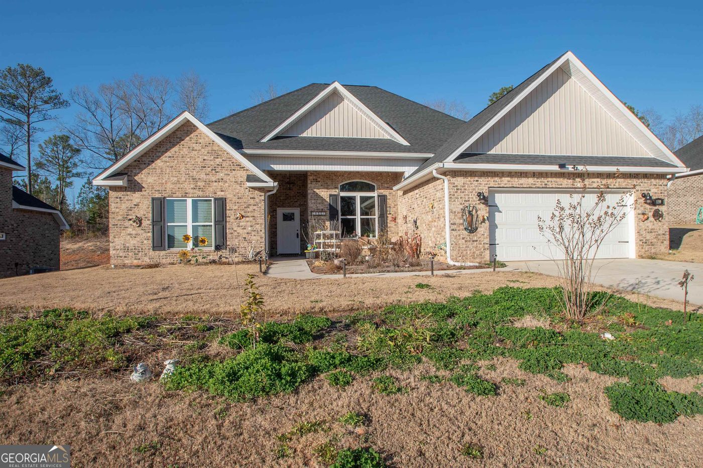 Come home to this like new (built 2022) all brick beauty. Has all the extras. 4 bedrooms and 2.5 baths. You'll enjoy carefree living with no HOA in this coveted neighborhood in Byron that is so convenient to I-75. Cook like a pro in the well-appointed kitchen while entertaining guests in the open concept living room and kitchen. But there is also a formal dining room. Living room has a coffered ceiling and one bedroom and the master bath has cathedral ceilings. There is a huge master suite and the other three bedrooms are good sized too. There is a covered patio with TV hookup and ceiling fan and a stamped concrete sidewalk. Also added outside are an oversized, two car garage, new gutters and a new fenced back yard with a single and a double gate. You'll love all this home has to offer.