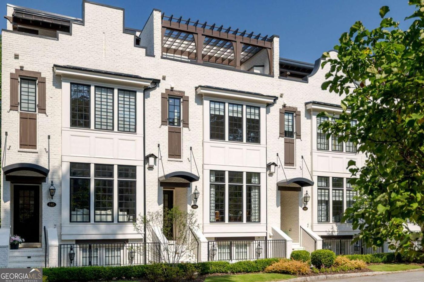 Enveloped in a gated enclave of luxury townhomes, welcome home to 140 Ridgley Court, a one-of-one opportunity on Chastain Park. Privately situated on the premier corner lot, this 4BR/4.5BA home with private elevator, rooftop patio, and serene privacy delivers contemporary style, exquisite touches and modern convenience. Step inside to discover an open and intuitive floor plan ideal with four fully-finished levels for everyday living. Four outdoor spaces include: rooftop patio, kitchen opens to the screened porch, Living Room opens to the balcony, plus a covered porch from the terrace level. The epicurean kitchen is fully equipped with a quartz waterfall countertop, Wolf stainless steel appliances, built-in Sub Zero refrigerator, and more. The main level family room boasts a gas fireplace with a stone surround, while the oversized owner's retreat features a relaxing ensuite bath with a soaking tub, separate tiled shower, and dual vanities. Custom window treatments give options for partial or full blackout privacy throughout the entire home. Custom RH lighting has been curated for each room. This home is fully automated with Control 4 for a truly intelligent smart home experience. The sky terrace with open rooftop and custom canopy connects you with nature and is a great place to relax. The finished terrace level with covered porch offers options for ample entertainment space, additional bedroom, exercise area or office. Residents of West Wieuca enjoy proximity to Chastain Park, restaurants, and shopping. This townhome presents a rare opportunity for contemporary luxury living in a coveted Buckhead/Sandy Springs location.