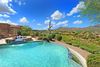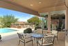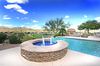 Located at the end of a quiet cul-de-sac, this single level (no steps) custom home in Sunridge Canyon is over looking the golf course with gorgeous mountain views. Views from the moment you walk up to the home. This three-bedroom home plus office offers a great room floor plan perfect for entertaining. Kitchen has granite countertops, bar seating, double ovens, built-in buffet and hutch cabinets, 48” wood panel refrigerator freezer and pantry. Great room situated to enjoy the views, gas fireplace, and access to resort style backyard including pool with water feature, built-in barbecue, gas fireplace with built-in seating, and spacious covered patio. Home offers formal dining area, formal living room with wood floors, office with built-in desk and Murphy bed. Travertine floors are throughout the house except bedrooms. Master suite has beautiful wood floors, sitting area, 3 large windows with exceptional views, his and her closets, his and her sinks, Jetta tub, separate shower and vanity. Large laundry room offers abundance of cabinets and sink. Three-car garage has epoxy floors and workbench.