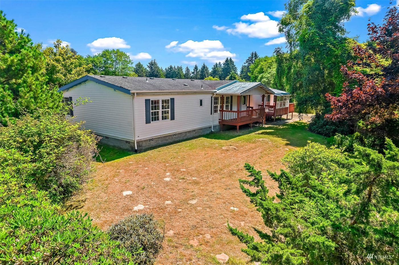 Incredible opportunity in Grayland! This 3+ bed, 2 bath 1994 manufactured home sits on 8 acres of seclusion close to the beach. ~1785 square feet, you'll find open living/dining and kitchen with two bedrooms and a full bath on one side. The other side features the primary bedroom with attached large office and full bath with handicap access. The now-covered deck has a bonus room and living space. Outside you'll find wonderful garden space with room to expand structures/gardening/farming plans, detached ~2400 square foot shop (~24x100) with power and concrete floors throughout, along with covered storage for wood or car working, hobbies, and more! Buyer to verify all. Being sold as-is, estate sale.