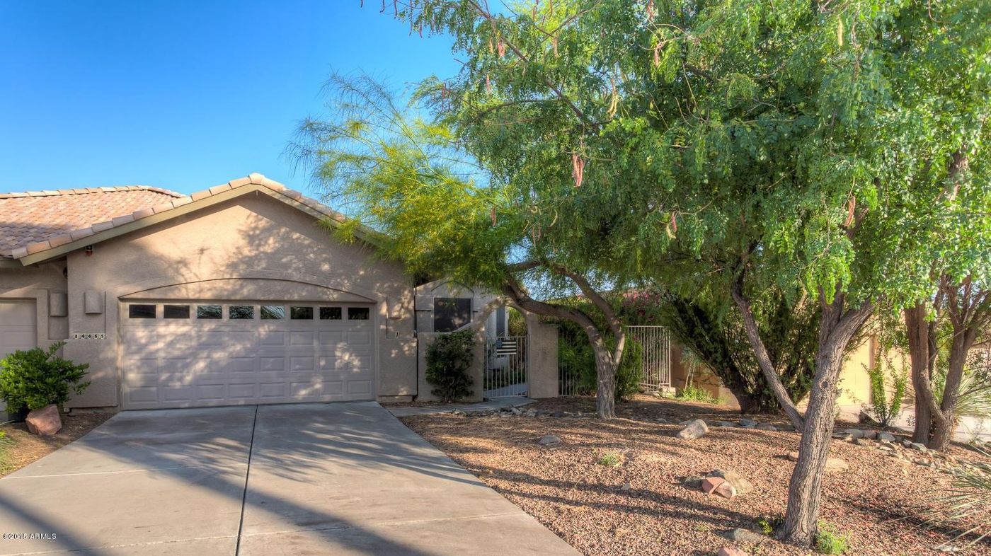 Great Fountain Hills home with amazing views. 3 bedroom, 2 bathroom duplex home with gas fireplace, extensive storage loft, vaulted ceilings with ceiling fans in every room, water softener, spacious 2-car garage with walk-in storage closet, private green backyard with full-length covered patio and views of the Superstition Mountains, Usery Mountain, Red Mountain, the famous Fountain Hills fountain every hour, and spectacular sunrises. You can enter your home from your attached private garage directly into your kitchen with its large walk-in pantry or enter through your scenic private courtyard. This is a wonderful place to call home or a smart investment opportunity.