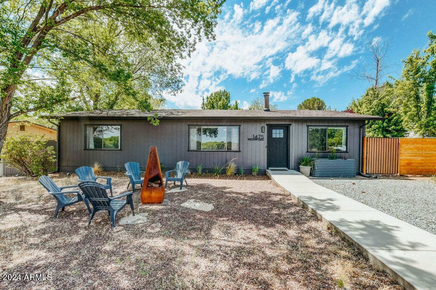 Welcome to your dream vacation home in the picturesque city of Prescott, just steps from Willow Lake and the Granite Dells. This fully furnished 3-bedroom, 2-bathroom residence spans 1,202 square feet, exuding charm and character in every detail. Meticulously remodeled with attention to detail, this turn-key property is ready for you to move in. Upgrades include new LVP flooring, kitchen cabinets, granite countertops, stainless steel appliances, modern lighting fixtures, and a new roof with rain gutters. A wall A/C unit was installed to efficiently cool the home during the summer months. The second bathroom was completely remodeled in 2024, featuring a beautiful subway tile shower/tub, new hardware, and updated plumbing. Located directly across from one of Prescott's finest sights, you'll wake up each day to stunning views of Willow Lake and the Granite Dells right outside your front door. Enjoy lovely walking paths that lead you to the sparkling waters of Willow Lake. The fully fenced backyard is your private oasis, offering a large patio with upgraded pavers, surrounded by lush apple trees, perfect for enjoying Prescott's breathtaking sunsets. A large storage shed is also included with the property. The primary bedroom is a spacious retreat complete with an en-suite bathroom and walk-in closet. The living room features a cozy wood-burning stove, creating a warm ambiance throughout the home. Other upgrades include new exterior paint, a stylish front fence, washer and dryer, and an RO system. Plenty of parking in the driveway or street parking! This property is fully furnished and 100% turn-key! Don't miss this rare opportunity to own this gem!