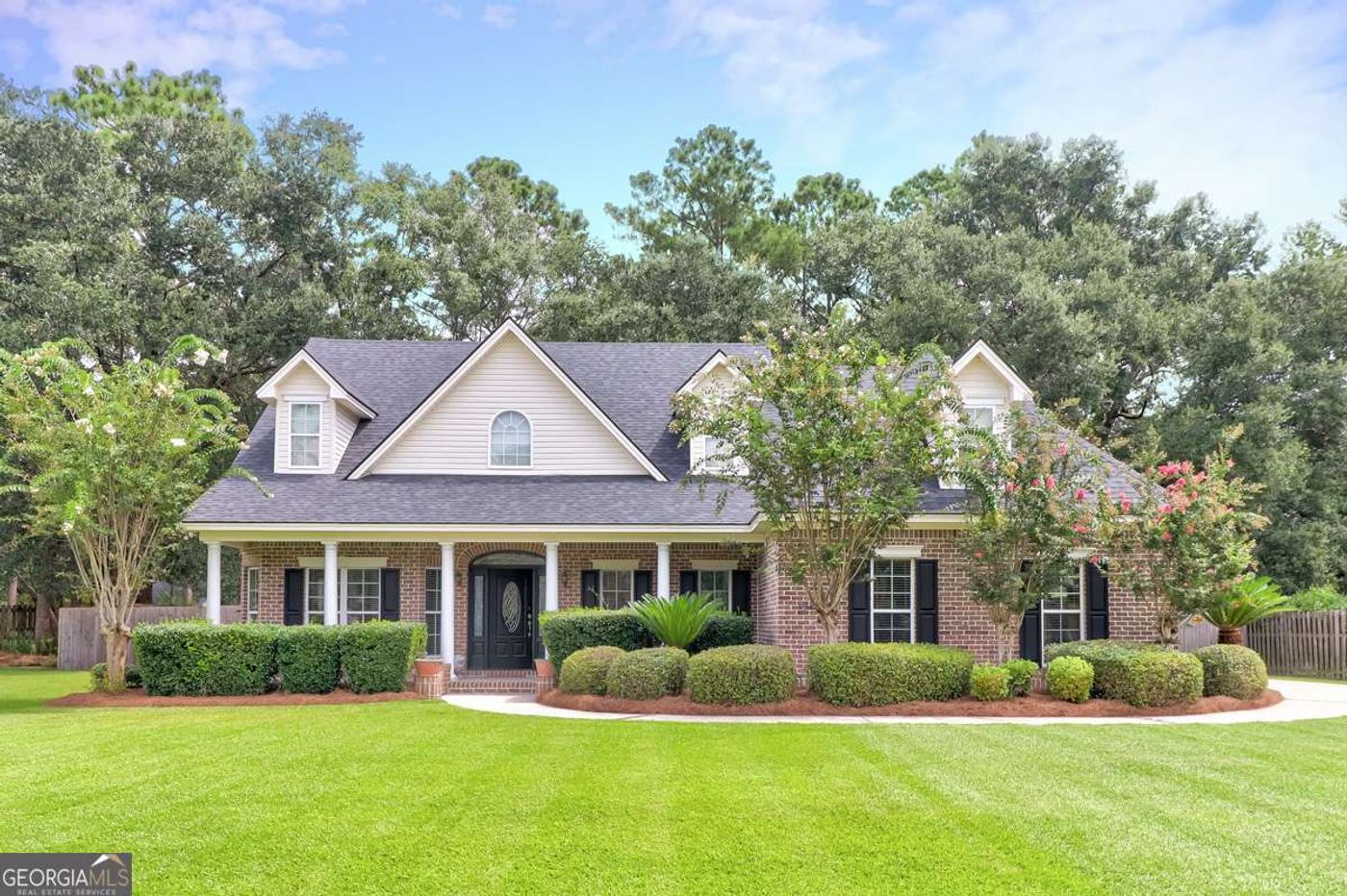 CalculateFall in love with this stunning home in Dasher's Landing! Enjoy your own private, low-maintenance saltwater pool. Perfect for relaxing or hosting backyard gatherings. This all-brick 5-bedroom, 3-bath home with a 3-car garage has plenty of space. The open-concept layout highlights beautiful wood flooring throughout the main living areas and a chef-inspired kitchen featuring a large center island, granite countertops, and a coordinating tile backsplash. Perfect for entertaining, there's a formal dining room, plus a screened porch overlooking the largest backyard homesite in the community, offering both space and privacy. The split floor plan includes a main-level owner's suite with an upgraded bath, along with two additional bedrooms and a full bath. Upstairs, you'll find a spacious area with two conjoined bedrooms, and another full bathroom an ideal setup for guests,Multi-Gen living or a shared retreat. If only the best will do, this home is waiting for you!