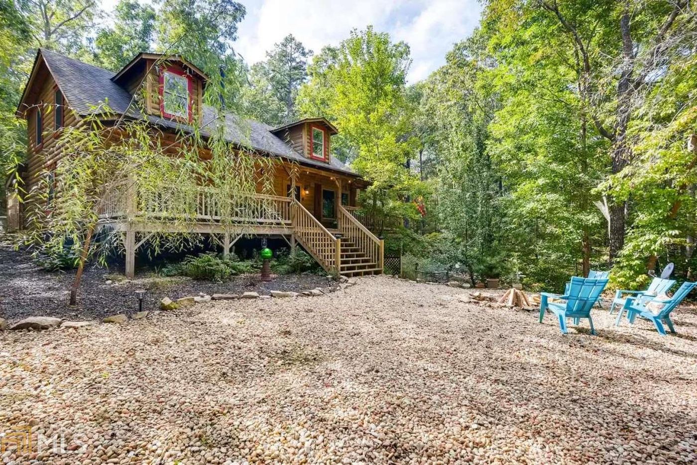 Enjoy this move-in ready, serene, custom retreat close to hiking, Emerson State Park, Reinhardt College, Allatoona & Carters Lake and more! Sought after "D Log" design log home with upgrades throughout. Super floorplan with Kitchen open to vaulted Family Room w/wood stove. Private Master Suite on Main offers walk-in Shower & refurbished 1920's claw foot Tub and French Doors to back Screened Porch. Upstairs: Full Bath, BR, and 2 Lofts (one easily converted to 3rd BR if needed). Huge Front Porch overlooks firepit sitting area. Screened back Porch opens to Deck.