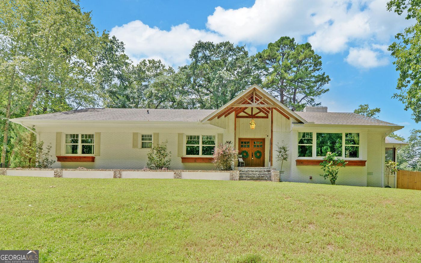 Nestled just beyond the tree line, this beautifully updated brick and Hardee board home offers 4,000 SF of living space in a peaceful setting just off Tugalo Street. Despite its quiet location, you're within walking distance to Downtown Toccoa. The striking timber frame entrance and double front doors set a welcoming tone. Inside, you'll find a foyer entry, a half bathroom, and a versatile living room that currently serves as an office but could easily be a fourth bedroom. The spacious family room features a stone fireplace with a copper firebox and built in cabinets. A screened porch with brick tile flooring provides a perfect spot to relax while overlooking the saltwater pool and fenced backyard. The oversized bedrooms include a stunning owner's suite with a custom walk-in closet and a spa-like bathroom, featuring heated floors a tile walk-in shower and a separate soaking tub. The hallway boasts custom cabinetry and ample storage. Original refinished hardwood floors run throughout the home, adding to its charm. The kitchen is a showstopper with an abundance of cabinetry, a mix of glass doors, shaker style doors, and open shelving. An oversized island invites everyone to gather, and the kitchen is equipped with stainless double ovens, a gas stovetop with a pot filler, and a subway tile backsplash. The detached garage has been renovated, including new windows and a tiled dog bath, providing both style and convenience. The property also features a handsome gated entrance, adding to the sense of privacy. Recent upgrades include a wine cooler, a 16x20 saltwater pool, new kitchen flooring, a privacy fence on the side yard, a new dishwasher and refrigerator, a handrail at the back door and up to the attic, and a new water heater. The attic is expandable, offering potential for additional living space. This home is a private oasis, perfect for those seeking a blend of modern amenities and classic charm.