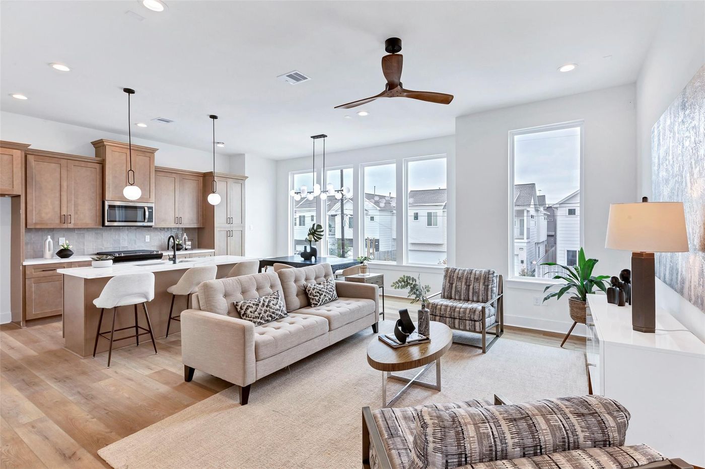 CalculateLast one for Sale! Welcome to a New construction luxury home in the heart of Houston's Downtown Area. The modern, elegant home offers you three large bedrooms & 3 1/2 bathrooms. The first floor offers you a large guest room with a large walk-in closet, a full Bathroom that opens to a large balcony. The second floor features an open-concept kitchen with an island, white Shaker cabinets, quartz countertops, a large pantry & a spacious living area with an abundance of natural light that opens to a large balcony. The third floor features a luxurious primary suite with two large walk-in closets and an owner's bath, complete with dual vanities and a stand-alone Glass shower. An additional large bedroom that includes a walk-in closet and a full bathroom. The home is located a minute from Houston Avenue, where you can enjoy convenience stores, restaurants, and bars in downtown.