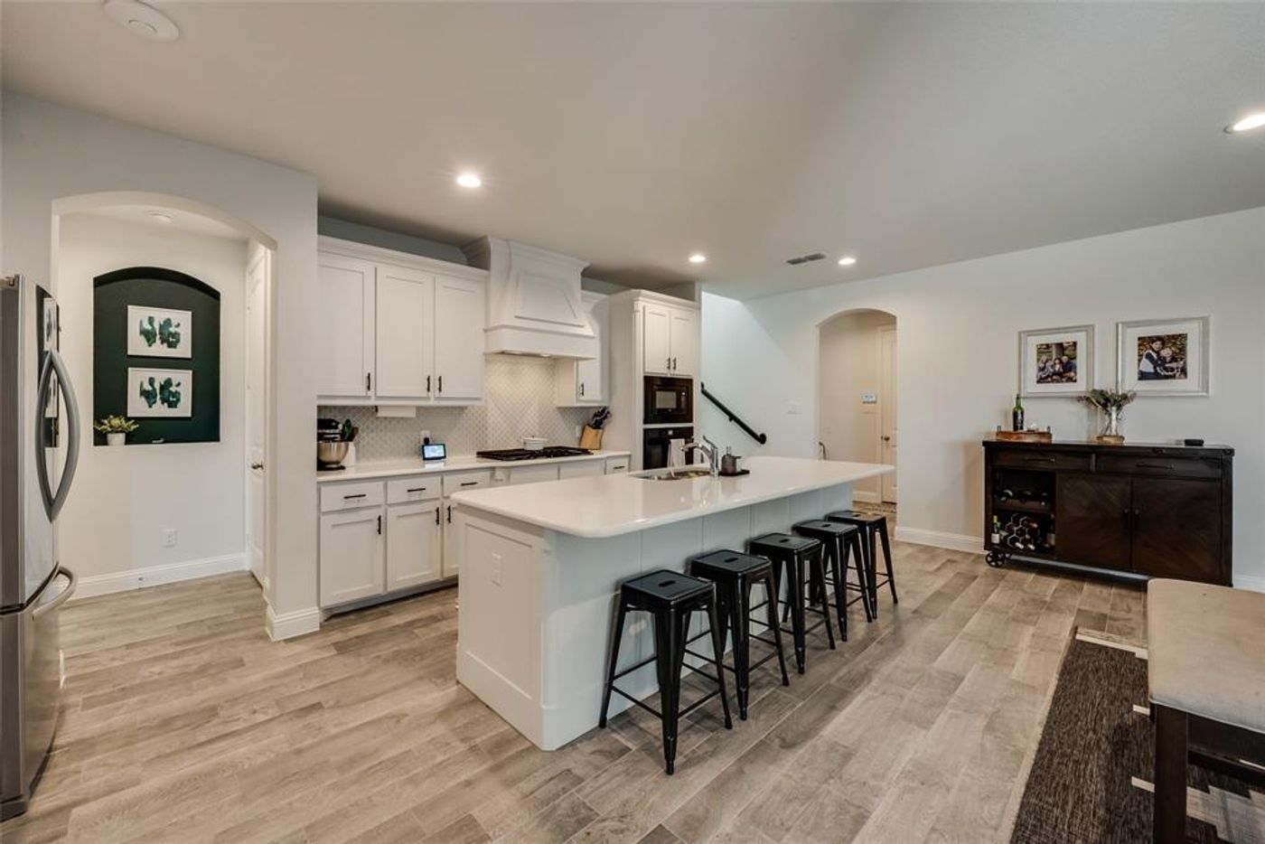 MORNINGSTAR COMMUNITY - ALEDO ISD - Fabulous floor plan with 4 bedrooms, 3 full baths, office with door, game room or second living area, media room or 5th bedroom, (no closet) spacious laundry room & more! The light & bright kitchen features an island with quartz countertops, gas cooktop, coffee bar, large walk-in pantry, & plenty of cabinets and counter space. The spacious dining & family room is the perfect space for entertaining & features a beautiful custom accent wall. Large owners suite with ensuite & walk-in closet. Extended back patio. Community amenities include 2 pools with splash pad, playground, basketball court, fish ponds, dog park & community events! Seller may need leaseback. In A MUD.