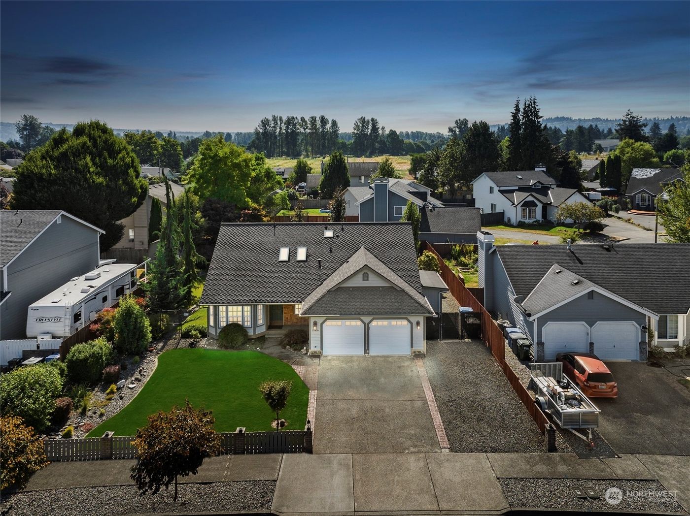 Downtown Sumner beauty with primary suite on the main floor! Come check out this lovely home located on a quiet street walking distance to parks, shopping, YMCA & all amenities. Immaculate inside & out with fully fenced private backyard, open floor plan with vaulted ceilings throughout, skylights, great kitchen with breakfast bar and pantry that is open to dining area. Stainless appliances stay. Skylights make it bright and airy. Upstairs has 2 spacious bedrooms, a den/loft area & a full bath. Clean garage and outdoor shop/storage shed accessed from backyard. Absolutely remarkable high end 50 year comp roof installed recently. Home has A/C. Room for RV parking. Highly desirable area-must see property! TV's & safe stay, furnace serviced.