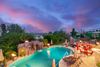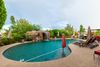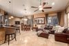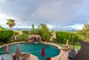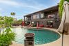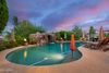 This spectacular home has it all. Entertainers dream with a backyard oasis & majestic panoramic mountain views, city lights. You enter into the home through a beautiful First Impressions Wrought Iron door including screen. Next is the kItchen/breakfast bar which open into the great room. Take note of the new Anderson windows in kitchen area. The arcadia doors in both rooms unfold to the outside patio with grilling and seating area to enjoy morning coffee or evening meals, not to mention the breathtaking mountain views and ''world famous'' Fountain Hills fountain. The heated (electric and propane with a variable speed pump and new sand filter and lights) pool includes a rock slide water feature, grotto with lights and speakers & 5 fire bowls plus a pool bath with a steam shower! Next to the pool is a 49x23 sports court for basketball, volleyball, tennis or pickleball. What more could you ask for...and all of this surrounded by lush landscaping that provides tons of privacy. Seating for 20+ allows for large backyard BBQ's. Enjoy an oversized unique bar for a kegerator, sink & refrigerator. This home sleeps a large number of people, so there is plenty of room for guests along with added outdoor space for family fun. The oversized RV gate allows for 40' boat, RV or other road vehicles. The expansive front walkway and driveway areas all have new pavers with added parking space. Enough room for 6 vehicles including the garage. There is a large storage room in the garage to accommodate extra boxes, Christmas items (leave your tree decorated year round!). There is another storage area underneath the stairwell that includes a lower level washer/dryer for extra convenience.