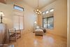 This charming Santa Fe-style home, located in the exclusive Pueblo Casandra community, offers a serene retreat in a prime cul-de-sac location. Featuring exquisite craftsmanship throughout, the home boasts knotty alder cabinetry, custom light fixtures, and an impressive 12-foot ceiling height. A beehive fireplace adds warmth and character to the spacious living areas, while the tiled medallioned entry and solid oak 8-foot doors set the tone for the home's inviting atmosphere. The private backyard is an entertainer's dream, with an extensive flagstone patio, thoughtfully landscaped the entire property is designed to offer a low-maintenance, tranquil lifestyle. The community amenities include a sparkling pool, spa, and a cabana—ideal for unwinding in a in a peaceful, resort-like environment.