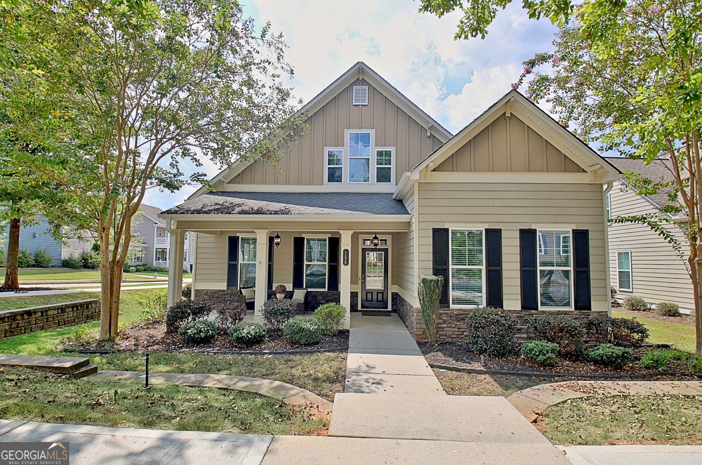 Welcome to 155 Colonial Court, a charming Craftsman-style home nestled on a desirable corner lot in the sought-after Villages at Lafayette-one of Fayetteville's most vibrant and walkable communities. This beautifully designed 5-bedroom, 3-bathroom residence offers the perfect blend of space, style, and convenience, just minutes from historic downtown Fayetteville and right next door to the city's lively amphitheater. Imagine strolling to concerts, festivals, and events with ease, then retreating to the peaceful comfort of your own front porch.    From the moment you enter, you'll be greeted by high ceilings and a spacious open-concept layout that brings the living and dining areas together with effortless flow. The heart of the home-the kitchen and breakfast nook-sits at the rear, featuring rich wood cabinetry, granite countertops, and stainless steel appliances. Just off the kitchen, you'll find convenient access to the laundry room, garage, and a cozy covered back porch, perfect for morning coffee or evening wind-downs.    The main floor offers thoughtful flexibility with a guest bedroom and full bath, along with a generously sized primary suite. The primary retreat includes an extra-large walk-in closet and a luxurious en suite bathroom with double vanities, a soaking tub, separate shower, and private water closet-a true haven for relaxation.    Upstairs, you'll find three oversized bedrooms, each with walk-in closets, plus a large walk-in storage room, providing plenty of room for family, guests, or hobbies. Fresh interior paint and brand-new carpet throughout make this home feel fresh, clean, and move-in ready. Built with quality HardiePlank siding and timeless architectural details, this home combines character and durability.    The Villages at Lafayette offers an amenity-rich lifestyle with sidewalk-lined streets, pickleball courts, a dog park, swimming pool, and playground-all in a close-knit community atmosphere.    If you've been dreaming of a home that offers both character and convenience in the heart of Fayetteville, look no further than 155 Colonial Court.