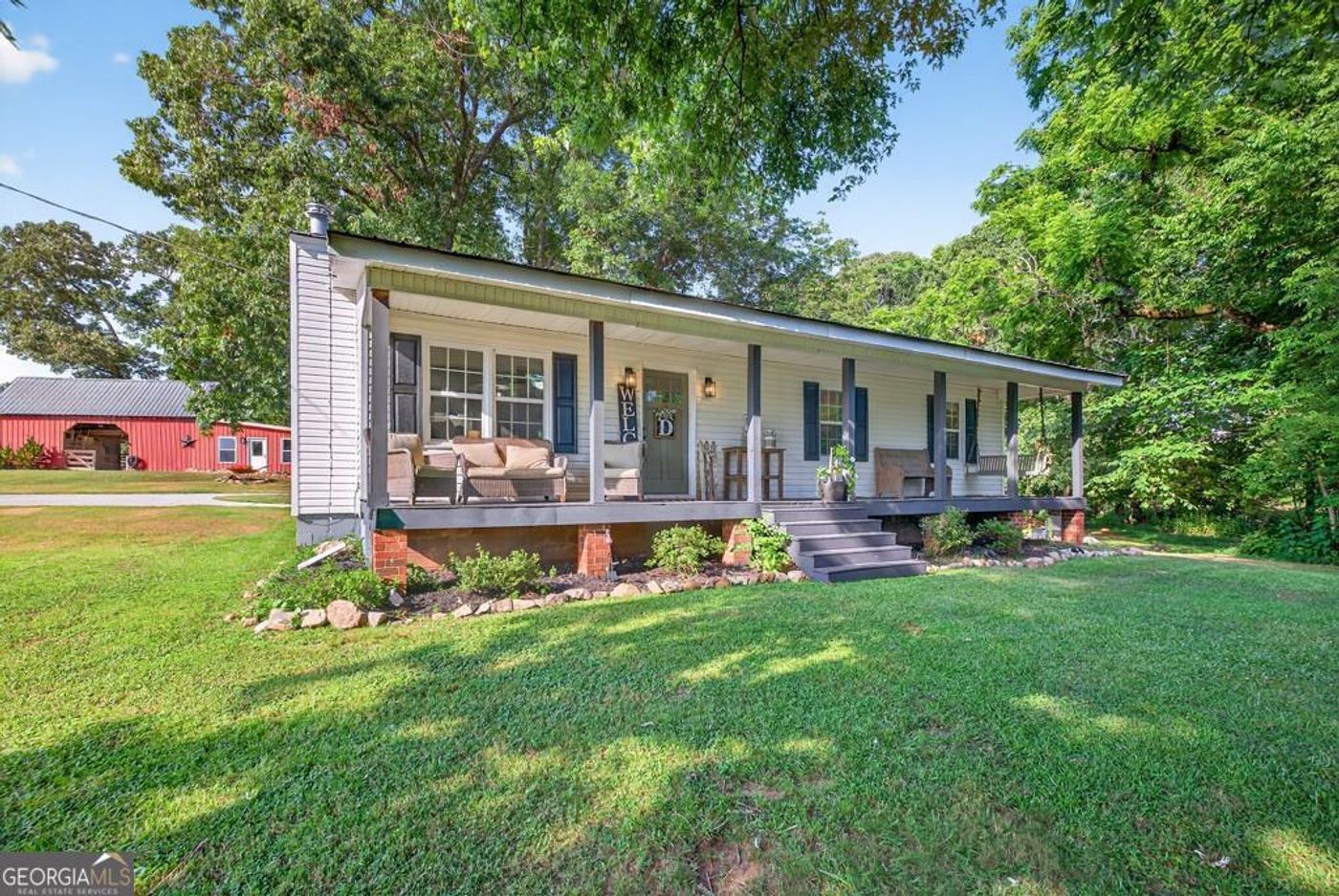CalculateWelcome home! This gorgeous 4 bedroom/4.5 bathroom ranch on a partially finished basement includes an in-ground swimming pool and sits on 5-acres. The newly constructed 2018 home was just recently renovated opening up the main level to create an open floor plan concept, and it includes lots of upgrades and a split bedroom plan. An inviting foyer leads to the spacious great room that includes coffered ceilings and a rock fireplace, with a view into the kitchen. The kitchen includes an eat-in breakfast area, kitchen island, stainless steel appliances, lots of cabinets and counter space, Quartz countertops, tile backsplash & pantry. The dining room is also open to the great room. The master suite located on the main level features a spa-like bath with his/her double vanities, Quartzite countertops, tile shower, claw foot soaking tub & a large walk-in closet. Two additional bedrooms are also on the main level, each with their own attached full bath, plus a mudroom/laundry room with built-in cabinetry and sink & half bath with Quartzite countertops. The partially finished daylight walk-out terrace basement includes a living room area, bedroom, full bathroom and flex room. The basement offers a separate private entry making this an ideal in-law/teen suite. The unfinished basement area would be perfect for additional parking, workshop, storage space or future expansion, plus it includes a storm shelter. Exterior features include an in-ground swimming pool with hot tub, covered gazebo, a large workshop that includes space for additional parking & tractor/boat storage, fenced & gated yard, irrigation system, landscape lighting, a covered rear porch that overlooks the private backyard, plus an inviting rocking chair front porch. Additional features include engineered hardwood floors throughout the main level, newly installed light fixtures, fresh interior/exterior paint, new faucets, new front porch columns, gable pediments & plantation shutters. The home is located in West Jackson near Braselton and within close proximity to schools, shopping, restaurants, boutiques & golf courses. This home is a true gem and is what you call Home Sweet Home!