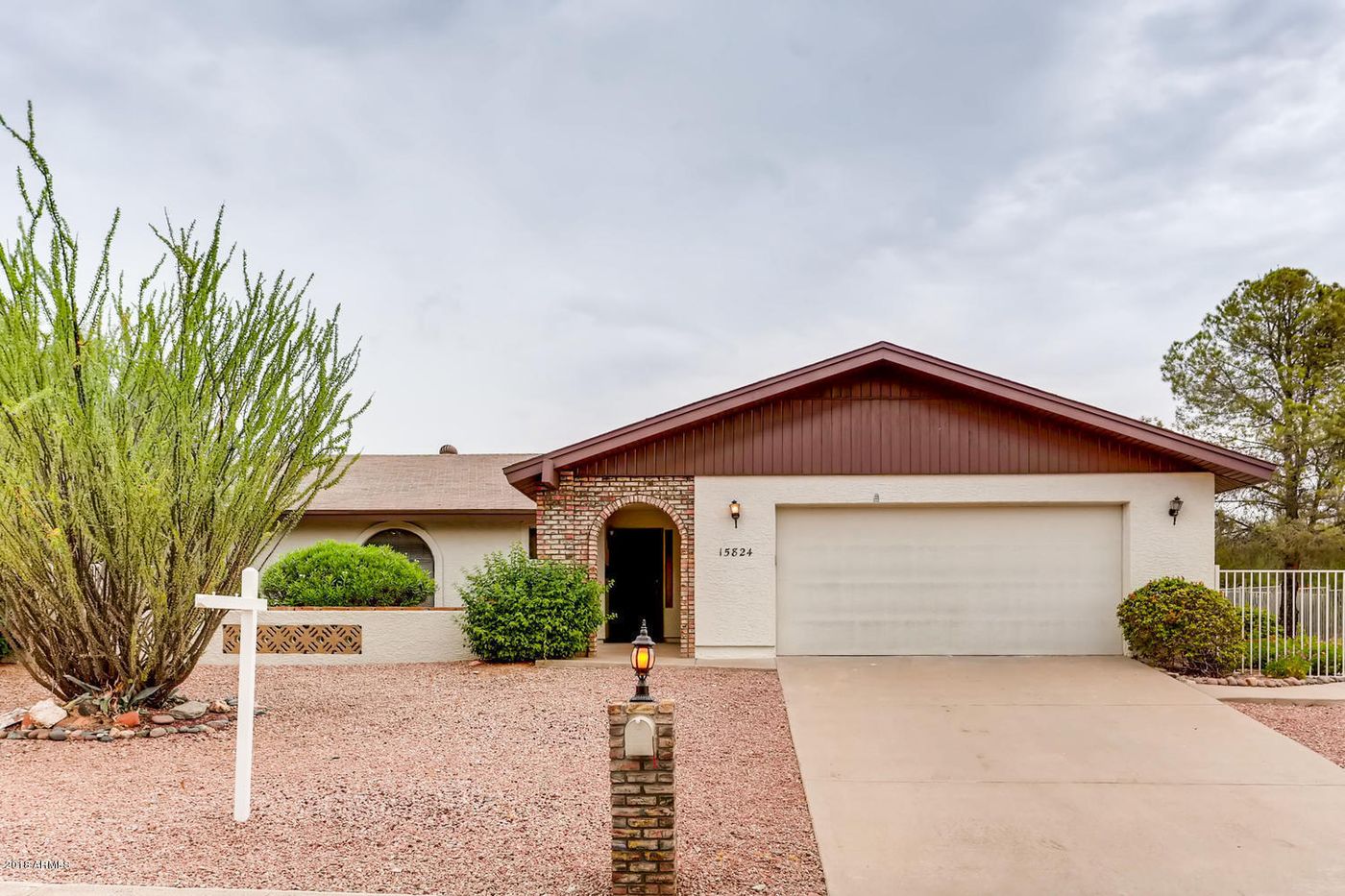 Custom-built, priced to sell property on large pool-sized lot w/citrus trees in best elevated part of Fountain Hills w/some mountain views. Tucked in serene quiet neighborhood, maintained to a tee w/NEW plumbing valves, NEW water heater, NEW water softener, NEW garage door opener & drip system upgrades. Features a single level, 2 master bed suites w/walk-in closets, large enclosed lot w/all-around view fence, superb design layout, VAULTED wood-beam ceiling in living room, open concept layout w/kitchen opened to the dining & family rooms, REAL wood brick fireplace, fully enclosed ARIZONA room w/double pane windows & roller blinds. Air circulation system. Solar tubes lights. Easily add 3rd bedroom! READY MOVE-in home. All appliances included. Termite & Home Warranties. NO HOA!!