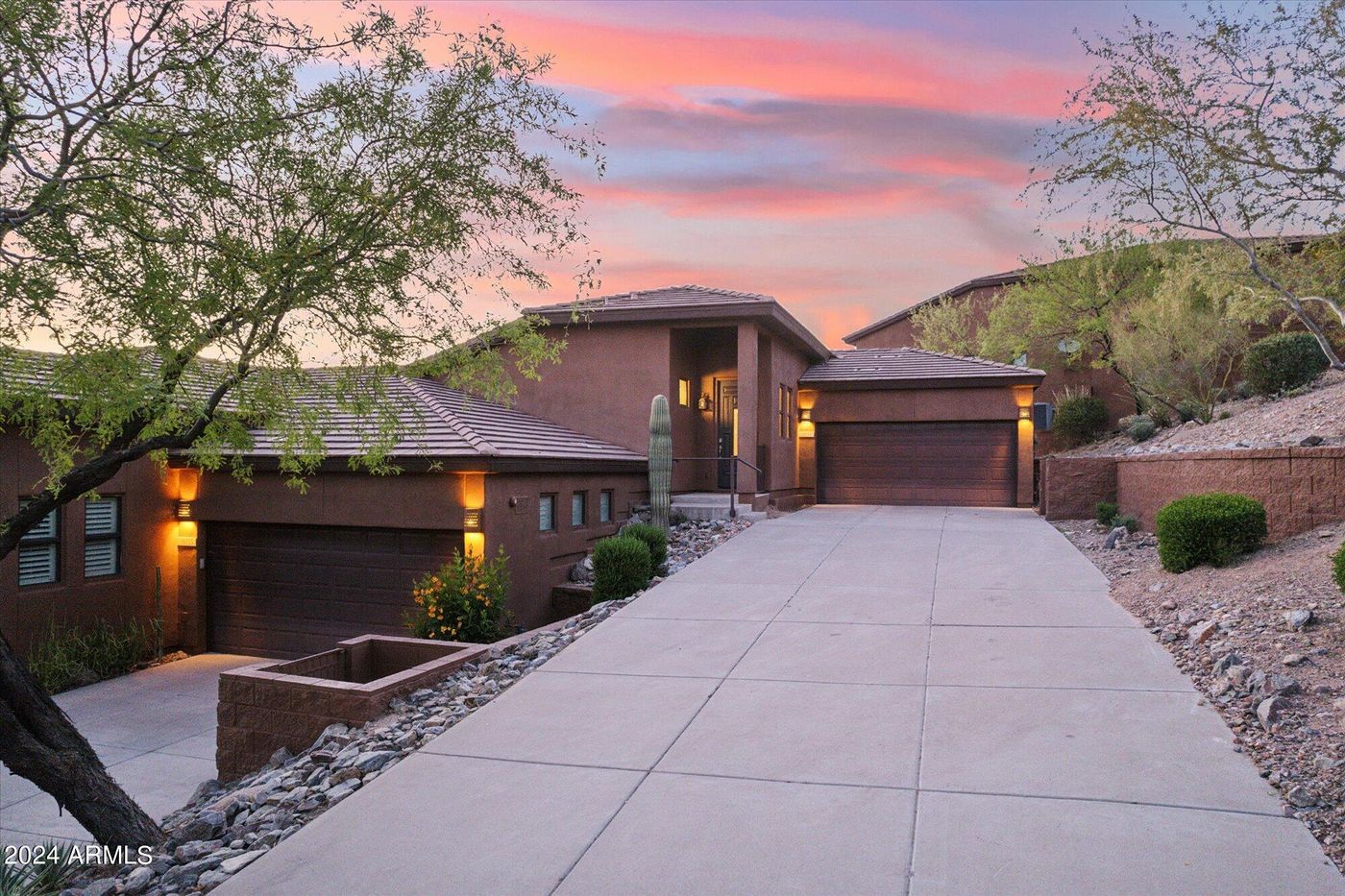 Welcome to your dream golf retreat, nestled in the prestigious gated community of Balera at FireRock, where luxury meets tranquility. Imagine waking up to breathtaking views of the lush fairway and verdant greens framed by majestic mountains stretching across the horizon. Or the front row seats to capture the sunset from your balcony Considered by many to be one the the most beautiful areas in all the valley, with the affluent Firerock as your exclusive address. This is your private sanctuary, boasting not one but two covered balconies offering the best vistas in town. Step inside to discover a warm modern aesthetic, with soaring ceilings and a cozy fireplace. Both the living room and entertainment room are equipped with multiple built-in speakers, ready to transform your home into your personal entertainment haven. Whether you're lounging or hosting, the open layout and bright ambiance ensure every moment is infused with the beauty of the surrounding golf course. The kitchen is a symphony of dark espresso cabinetry and polished granite counters, perfect for creating gourmet delights while savoring the panoramic views of rolling hills.