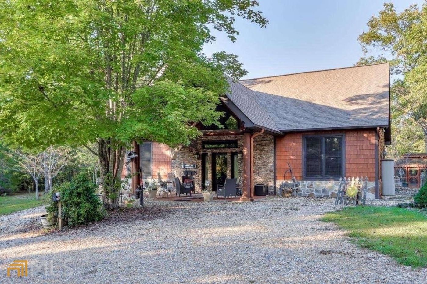 North Georgia Mountain living on just under 7 acres!! If you are looking to make North Georgia home, look no further than this 3 bedroom, 2 full bath, 2 half bath cabin-style beauty with detached garage featuring fully renovated apartment! Covered front porch welcomes you in with lots of space for outdoor seating, perfect for enjoying warm summer evenings. Open-concept floorplan leads you from living room to den to dining space with ease offering great natural light spilling from 2 story foyer! Upgraded kitchen is every home chef's dream featuring double oven, electric cook top with range vent hood AND lots of room to work or store with plenty of cabinetry and beautiful stone counters! Master bathroom features traditional soaking tub and separate standing shower, perfect for unwinding after a long day. Two story living room gives you additional space with loft on one side, perfect for extra sleeping room or home office, while other side hides third bedroom and half bath! Upper part of detached garage has been fully converted into apartment space with full kitchen, living room, bedroom and bath with soaking tub AND standing shower,...also bonus half bath perfect for rentals or hosting friends/family!! Land features shed, gardening area, bonfire pit and outbuildings perfect for lunch "outside" or reading! Do not miss the chance to own property on the beautiful land that is Mineral Bluff!!