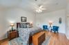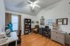 From the moment you step through the large formal entry, you are welcomed by graceful design and abundant natural light. The formal living and dining rooms are elegantly appointed with plantation shutters and offer the perfect setting for entertaining. To the right, the fourth bedroom doubles as a home office, complete with French doors, custom built-in shelves, and a full closet.