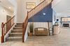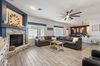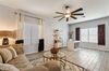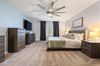This home offers five oversized bedrooms, including a downstairs bedroom with a full bath—perfect for guests or multi-generational living. The chef's kitchen is a dream, boasting granite countertops, white cabinetry, double ovens, and a massive island that flows into the great room—ideal for entertaining! A cozy gas fireplace adds charm, while the private den/office with stylish barn doors creates the perfect workspace or relaxation zone.