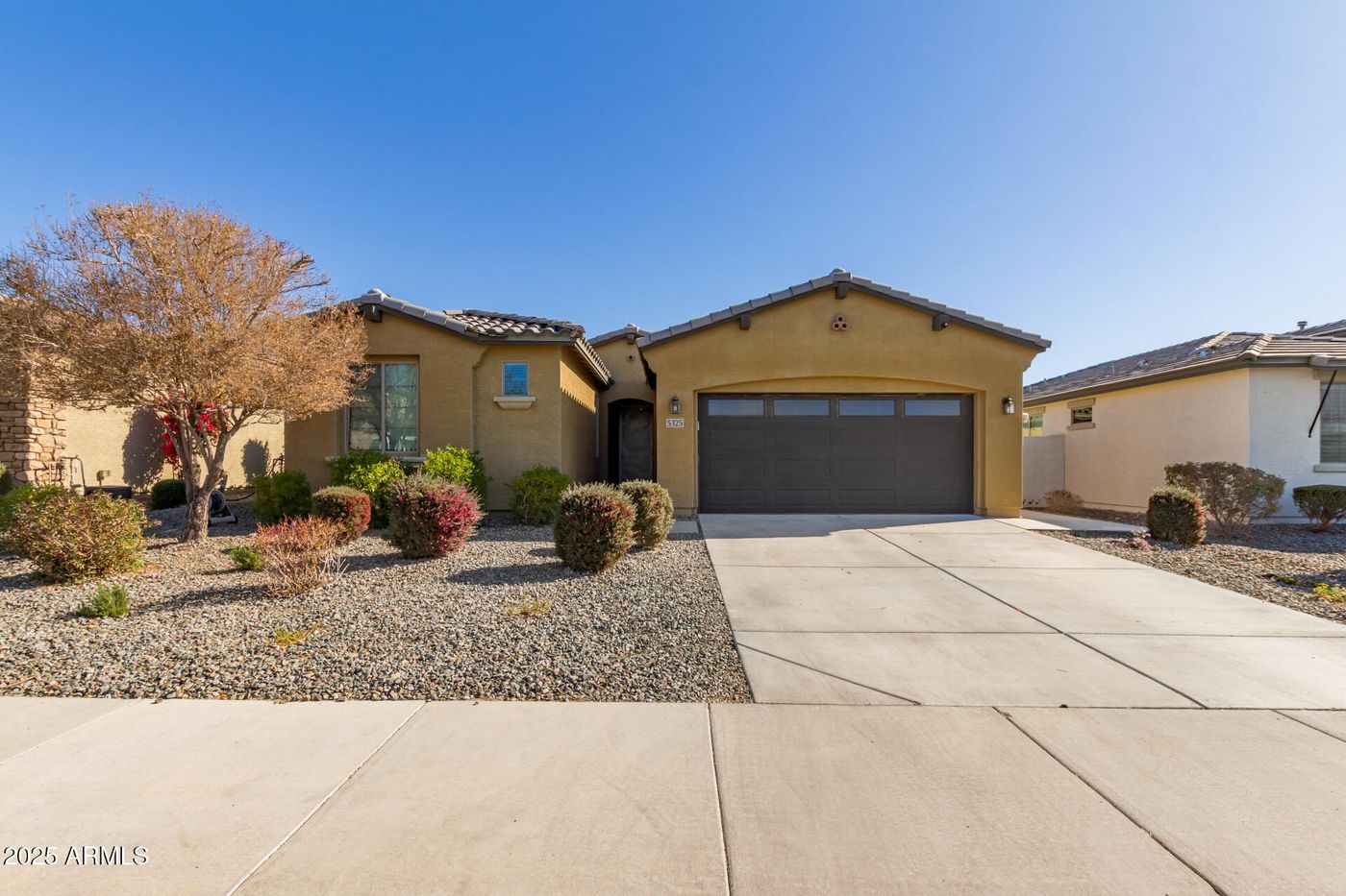OWNED SOLAR PANELS! (No qualifying or assuming payments! Just enjoy the free power)! Everything is ready for you! North/South exposure! Quaint front courtyard with pavers lead to recessed covered entrance. Home boasts large tile throughout. 2 big bedrooms off entrance share a full bath. Large flex room/den. (4th bedroom)? Useful half bath off main living spaces means guests don't infringe on bedroom baths. Dream kitchen with chocolate cabinets, REAL granite counters, spacious island, & walk in pantry. Open Great Room & Dining room. Main Bedroom is split, & features a huge walk in rain shower. Thoughtful touches such as a door which leads directly into laundry from the main bedroom closet. And there's a bonus mud room! Outside boasts ample covered patio, artificial turf and pavers. Gas plumbed for grill. Oversized 11'5" RV Gate means you have plenty of room to store all your gear. Cavernous tandem garage adjacent to your RV garage makes a HUGE space for all your toys and hobbies. There's an RV hookup in the garage. New High School is being built nearby. Buyer to verify all schools. MUST SEE!